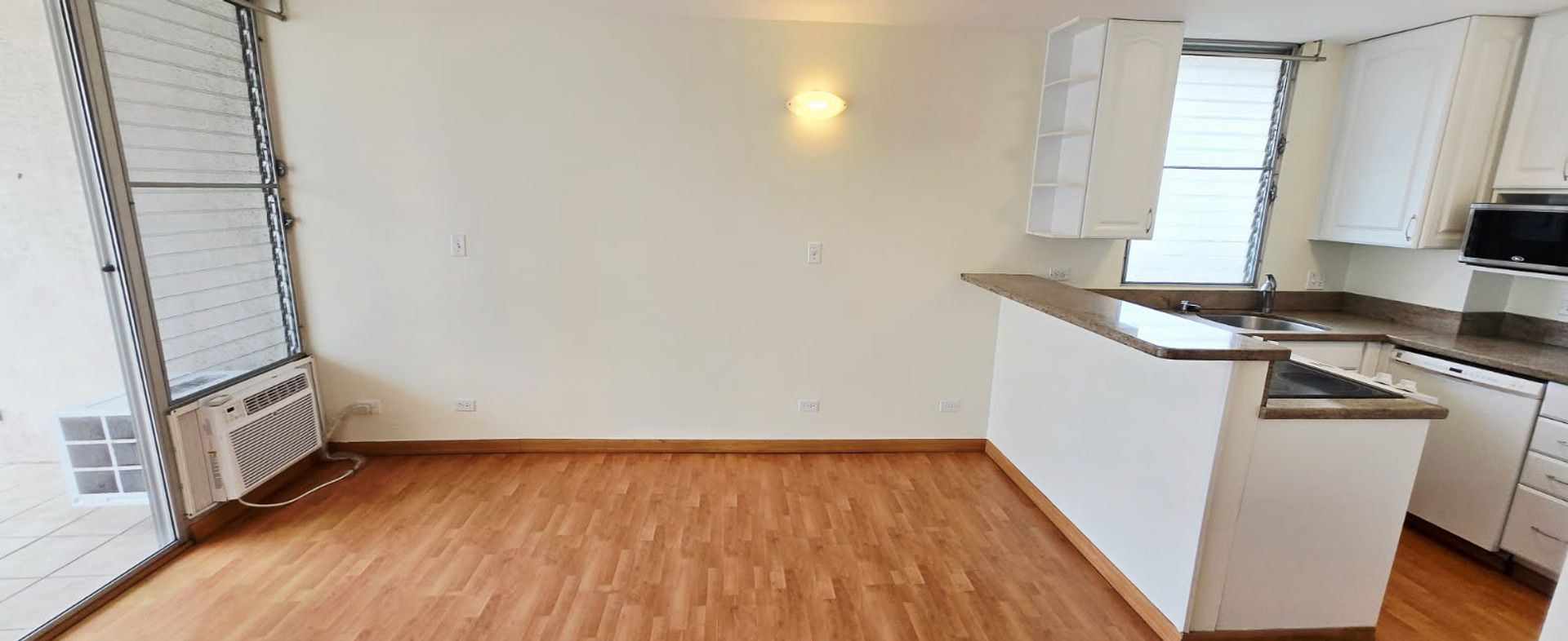 Partially furnished one bedroom unit inside a secured building. The unit comes with laminate wood flooring, washer & dryer appliances, window AC, and a spacious lanai overlooking the Ala Wai Canal and Yacht Harbor. One reserved parking stall.